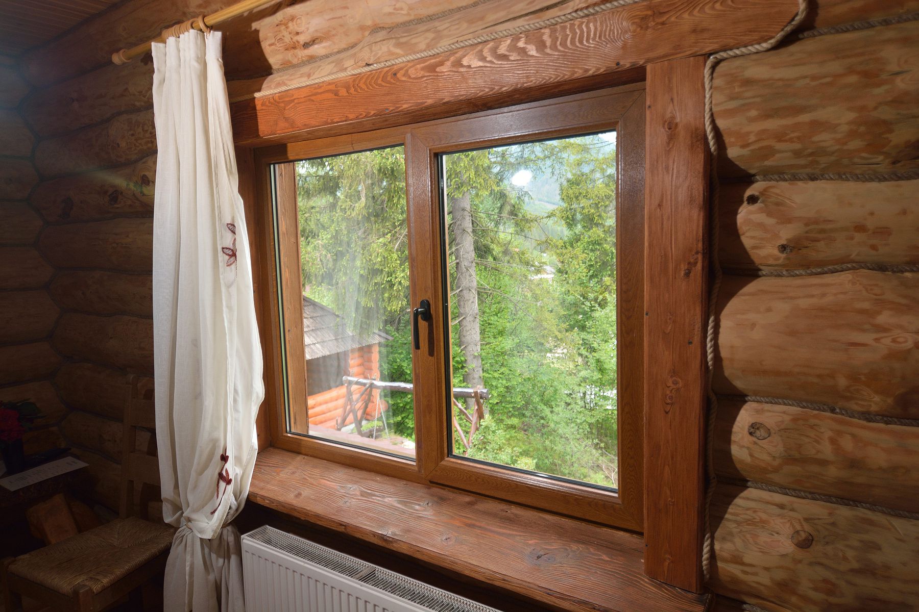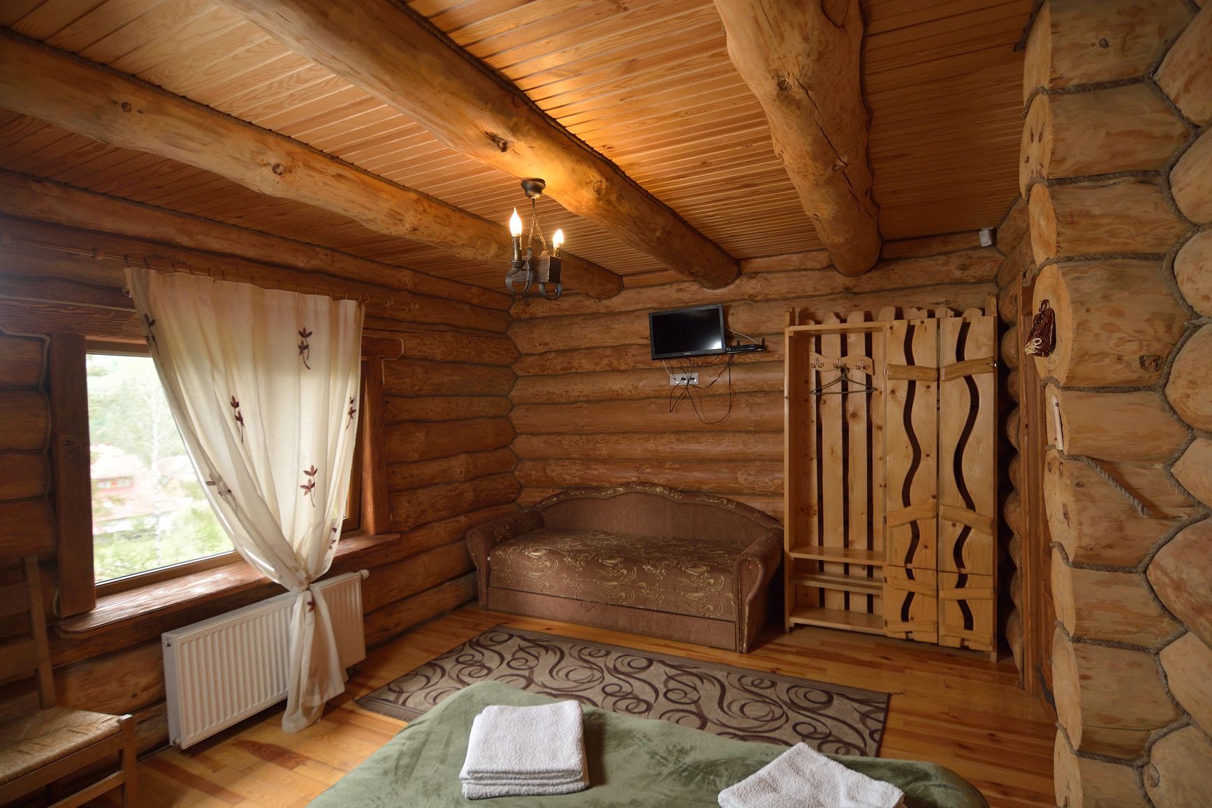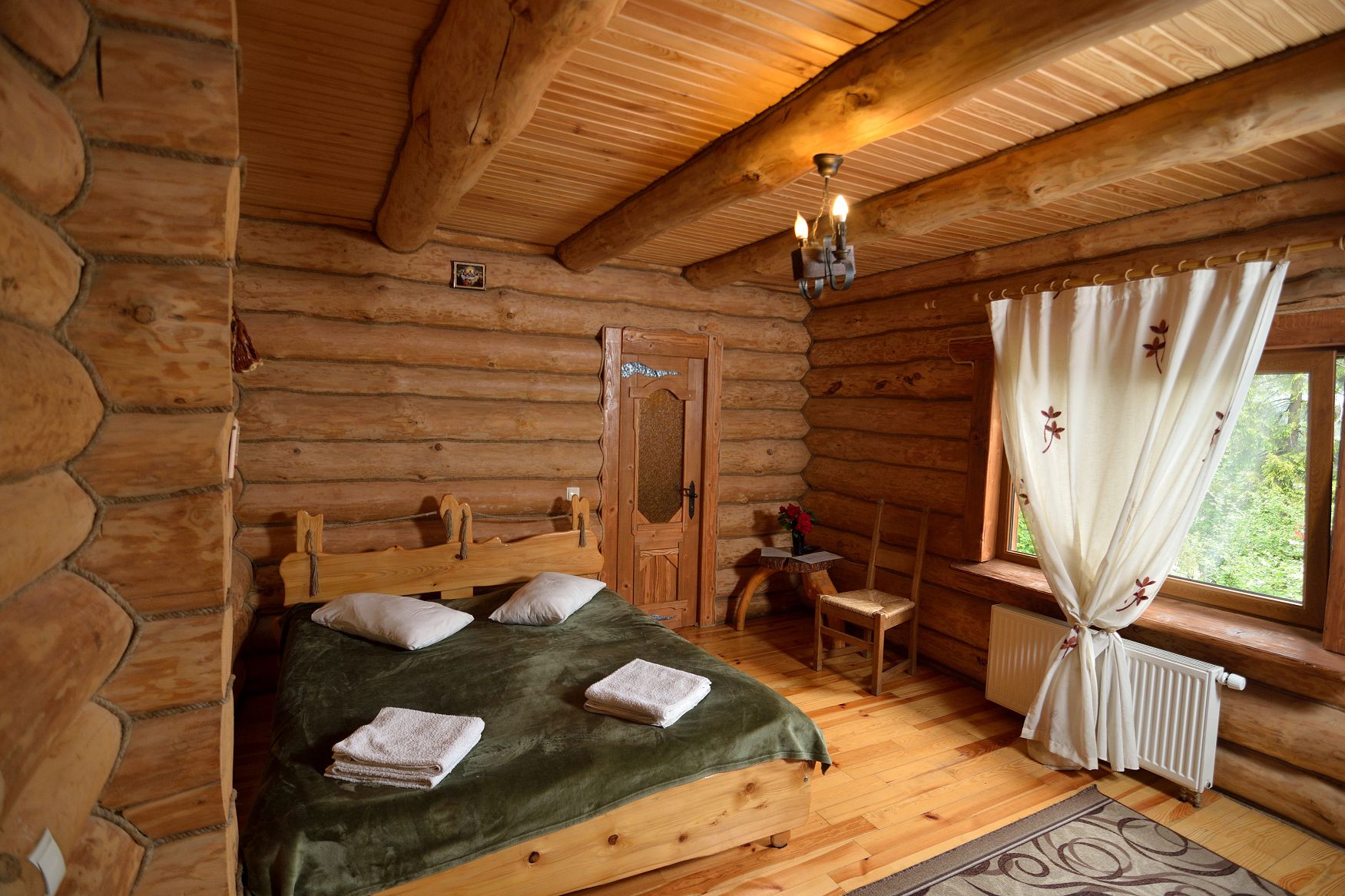 №4 КОМФОРТ - класичний однокімнатний номер розрахований на двох осіб, які бажають спокійного та комфортного відпочинку та знаходиться на другому поверсі комплексу. Номер оснащений дерев’яними меблями ручної роботи. Санвузол містить душову кабіну, умивальник, туалет.