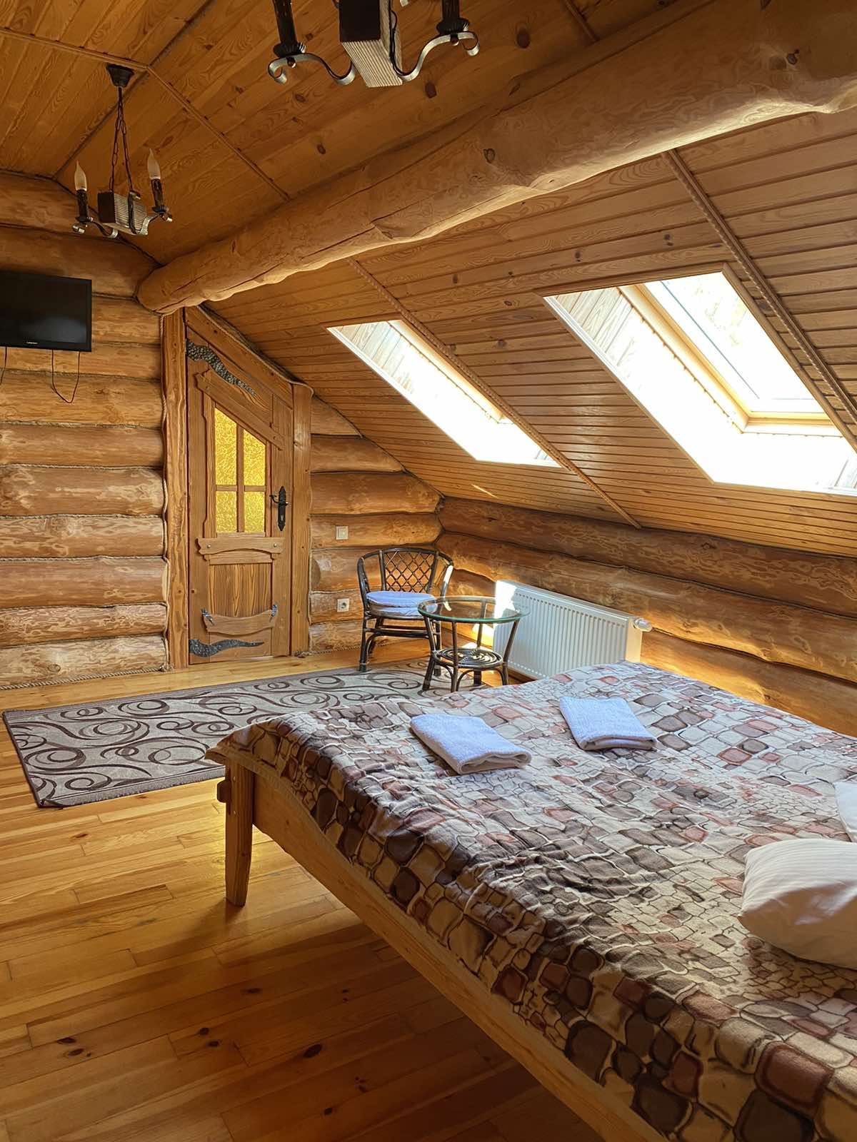 №7 ЛЮКС - двокімнатний номер розрахований на чотирьох осіб, які бажають спокійного та комфортного відпочинку та знаходиться на третьому поверсі комплексу з мансардним дахом та вмонтованими мансардними вікнами. Номер оснащений дерев’яними меблями ручної роботи. Санвузол містить душ, умивальник, туалет.