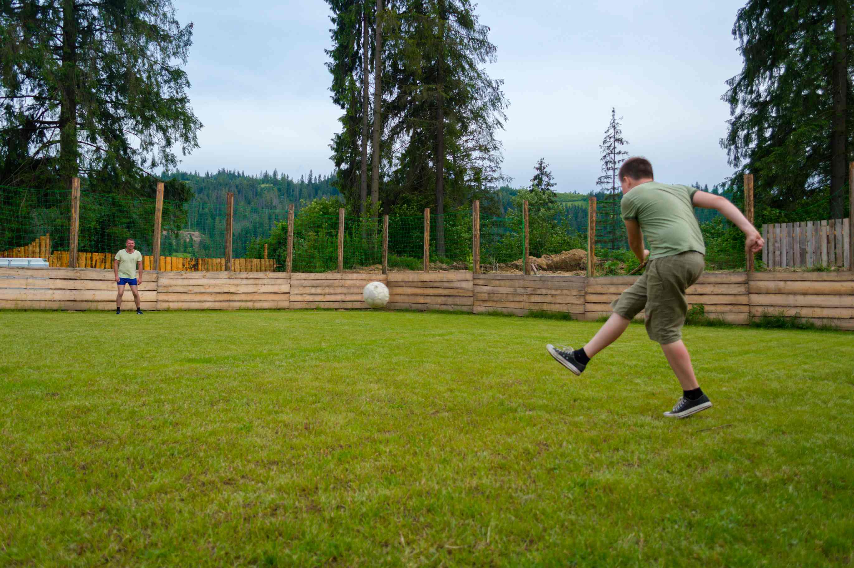 На полі можна пограти не тільки у футбол, але й у волейбол та бадмінтон. Поле вкрите газонною травою, де можна просто прогулятись босоніж по запашній вкритій росою траві.